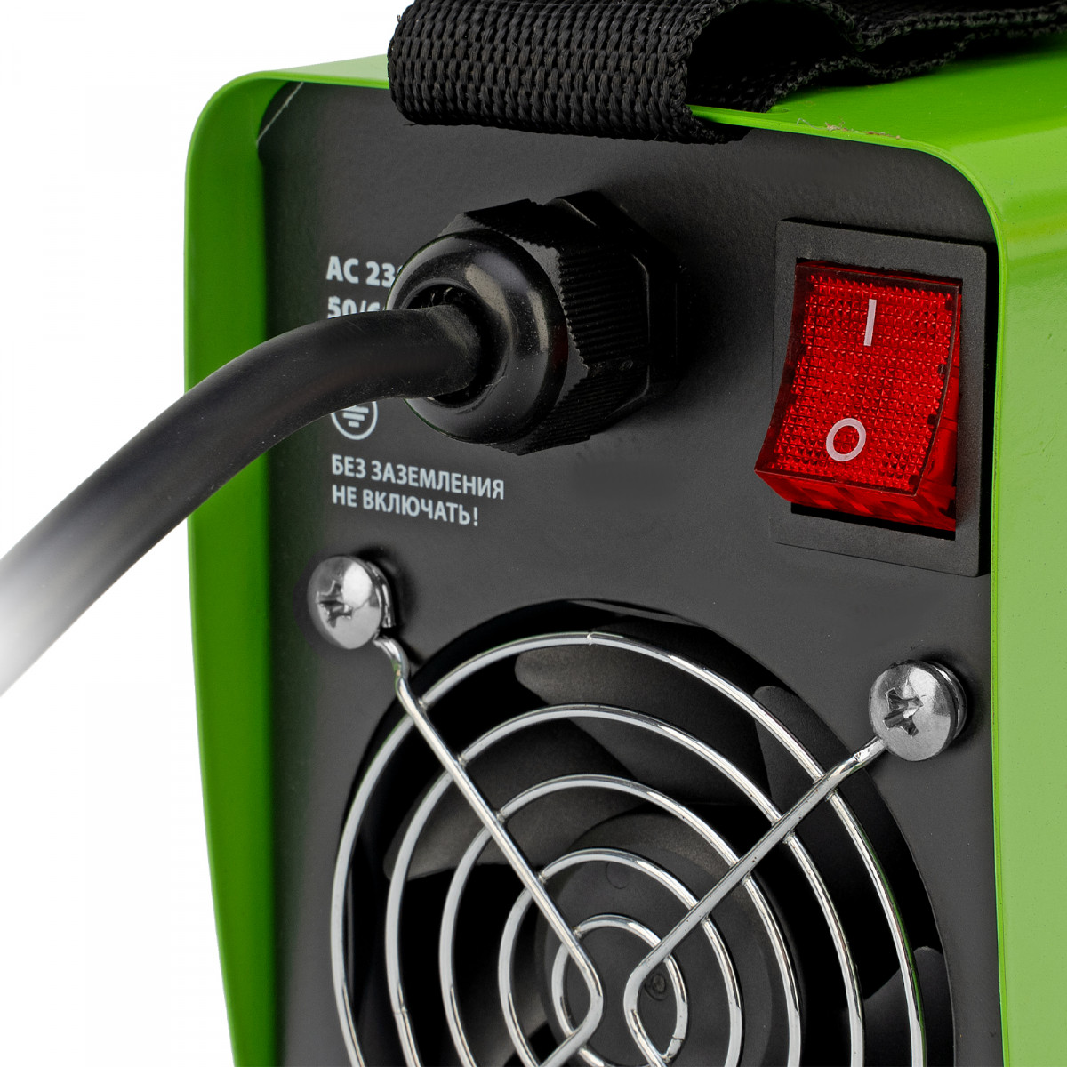 - Точная настройка — поворотный регулятор позволяет плавно изменять силу сварочного тока для достижения оптимального результата.