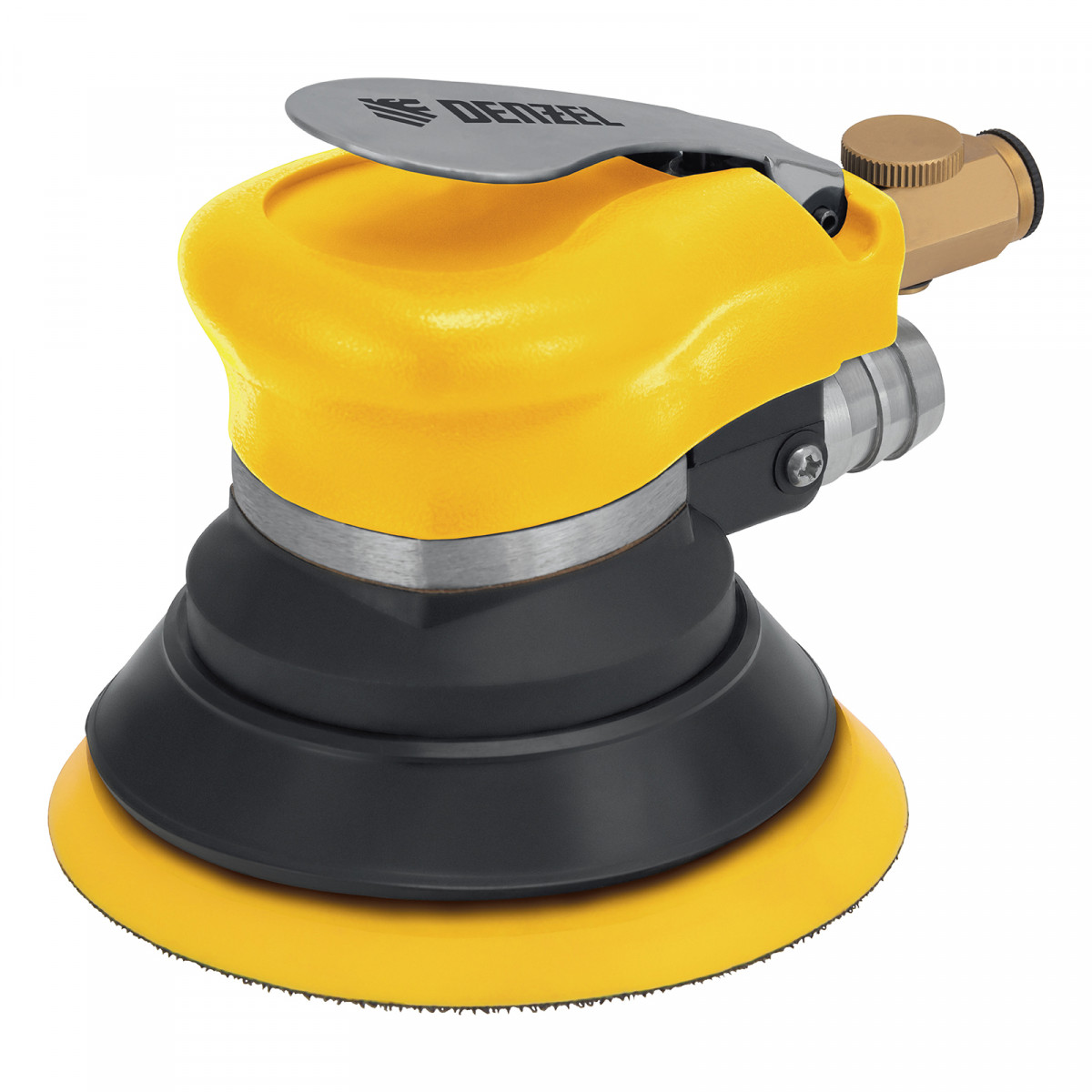 Эксцентриковая шлифмашина позволяет легко выровнять поверхность древесины, металла или пластика. Во время эксплуатации важно не забывать о добавлении специального масла ISO 46, которое можно наносить непосредственно на входной штуцер или использовать с блоком подготовки воздуха Denzel 57469, оснащенным лубрикатором для автоматического расхода масла.