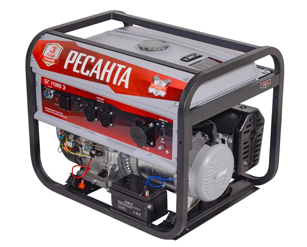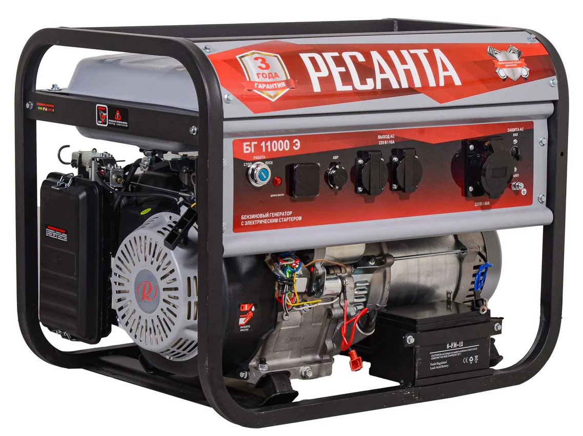 Бензогенератор Ресанта БГ 11000 Э – надежный источник электрического тока. Его применяют в частных домах, на дачах как резервное питание, а также в местах, не имеющих линий электроснабжения. Электрогенератор способен не только подстраховать на случай внезапного исчезновения света, но и стать полноценным источником питания для различных электроприборов.