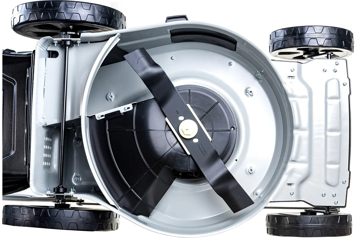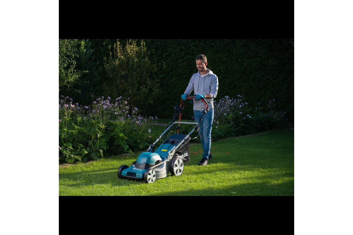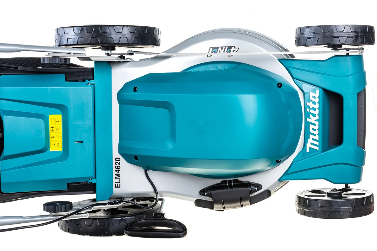 Электрическая газонокосилка Makita ELM4620 - мощная и производительная газонокосилка для участков площадью 800 - 1200 м². Оснащена асинхронным (без щеток) двигателем мощностью 1 800 Вт. Прочная металлическая дека шириной кошения 46 см поддерживает систему кошения 4 в 1 (кошение, сбор, мульчирование и выброс в бок(боковой желоб и заглушка для мульчирования входит в комплект)). Газонокосилка оснащена большими колесами (передние 20 см/ задние 28 см), которые позволят с легкостью преодолеть неровности на участке, а интегрированные шариковые подшипники сделают ход легким. Центральная регулировка высоты кошения имеет восемь положений от 20 до 75 мм. Широкая П-образная рукоятка позволит обойти препятствие с любой стороны, а регулировка по высоте сделает работу максимально комфортной. В период хранения эксцентриковые зажимы позволят быстро ее сложить. Комбинированный травосборник с индикатором заполнения и объемом 60 л занимает минимум места в зимний период.
