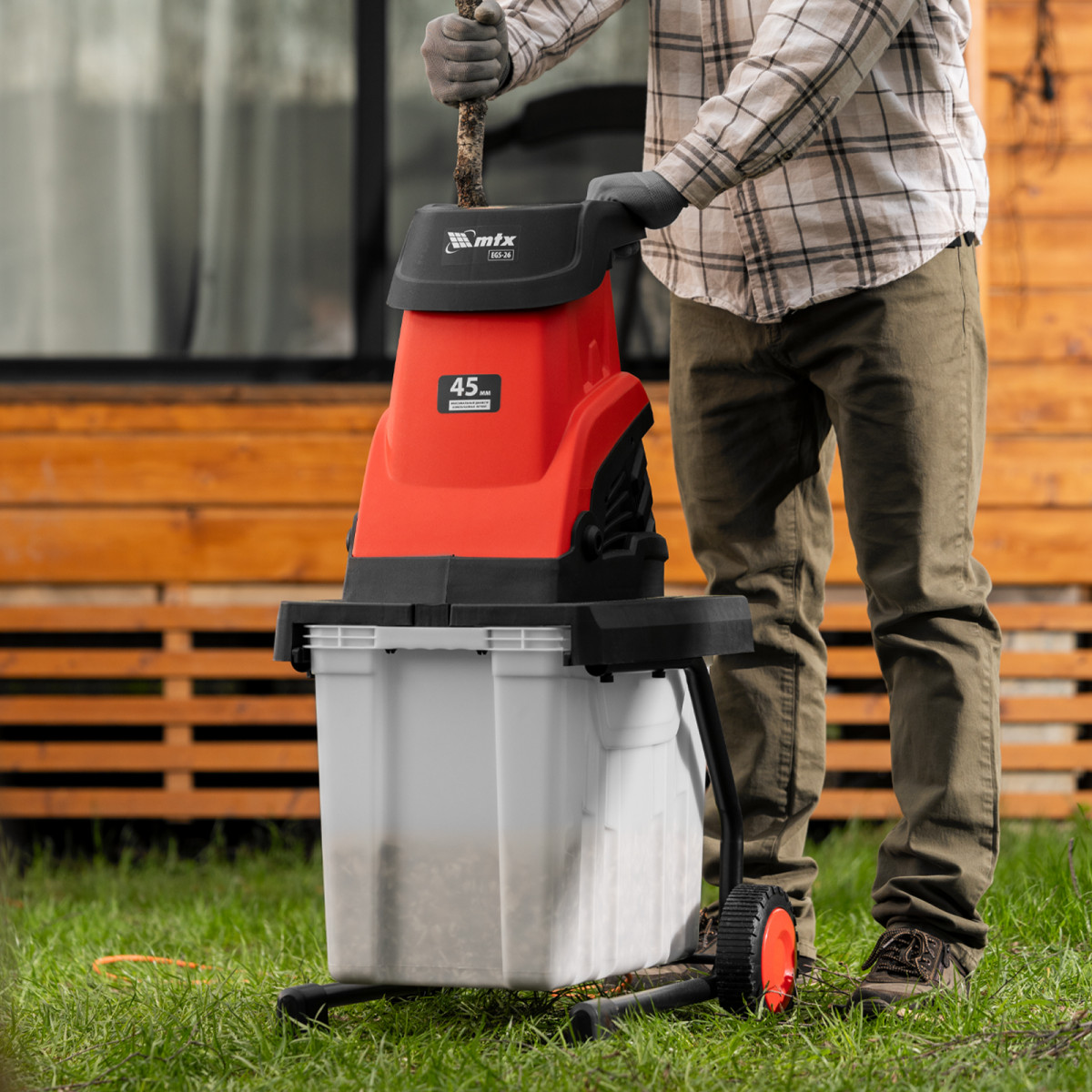 Электрический садовый измельчитель MTX EGS-26 59712 мощностью 2600 Вт предназначен для измельчения веток диаметром до 45 мм. Такой способ облегчает их утилизацию, а также позволяет использовать в качестве удобрения или мульчи. Измельчитель незаменим на дачном участке.