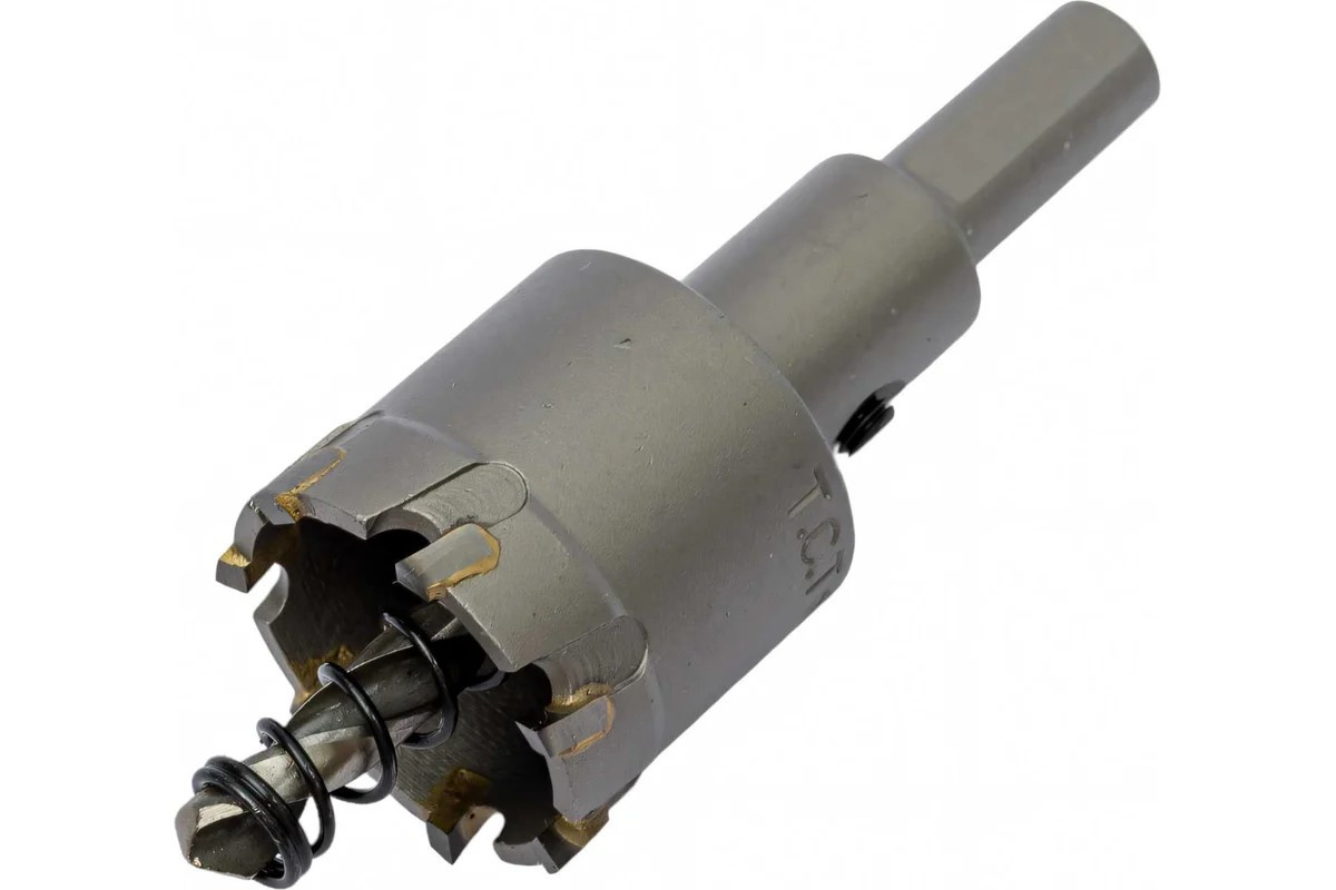 Коронка по металлу твердосплавная предназначена для сверления отверстий в металле, стали, латуни, алюминии и т.д. Также отлично справляется со сверлением нержавеющей стали толщиной до 2 мм.Коронка представляет собой цилиндрическую основу из углеродистой стали с ограничительным кольцом и трехгранным хвостовиком, который зажимается в патроне дрели и гарантирует отсутствие прокручивания.Режущая часть оснащена прочными твердосплавными (из сплава карбид-вольфрама) зубьями, позволяющими использовать коронку не только в бытовых, но и в профессиональных целях.Центрирующее сверло из быстрорежущей легированной стали не позволяет коронке сдвигаться при работе.Конструкция коронки монолитная, обладает повышенным ресурсом эксплуатации, высоким режущим качеством. Шестигранный ключ идет в комплекте.Устанавливается изделие на дрели, шуруповерты, сверлильные станки, а также на перфораторы (при использован