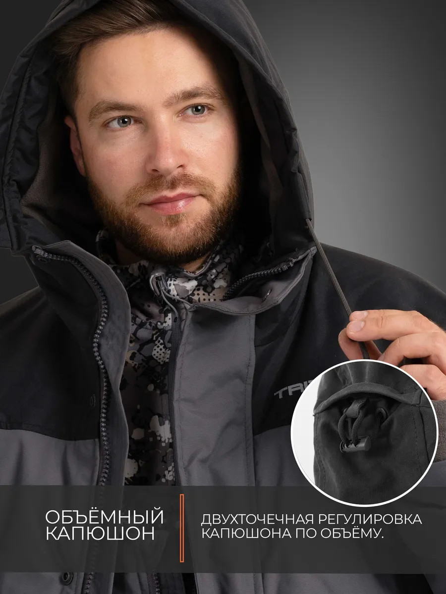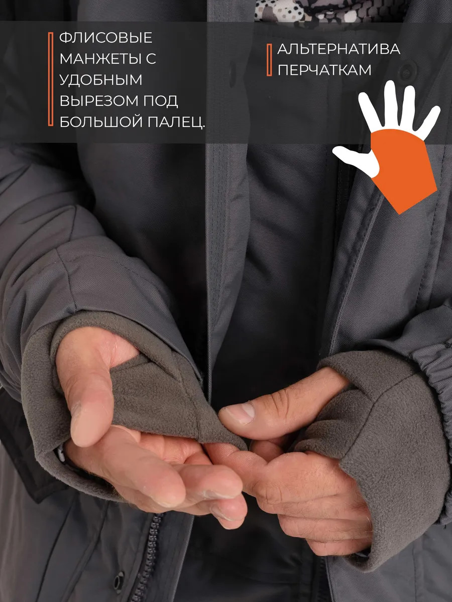 Зимний костюм STRONG -40 изготовлен из прочного материала Таслан, обеспечивающего защиту от холода и влаги в экстремальных условиях.