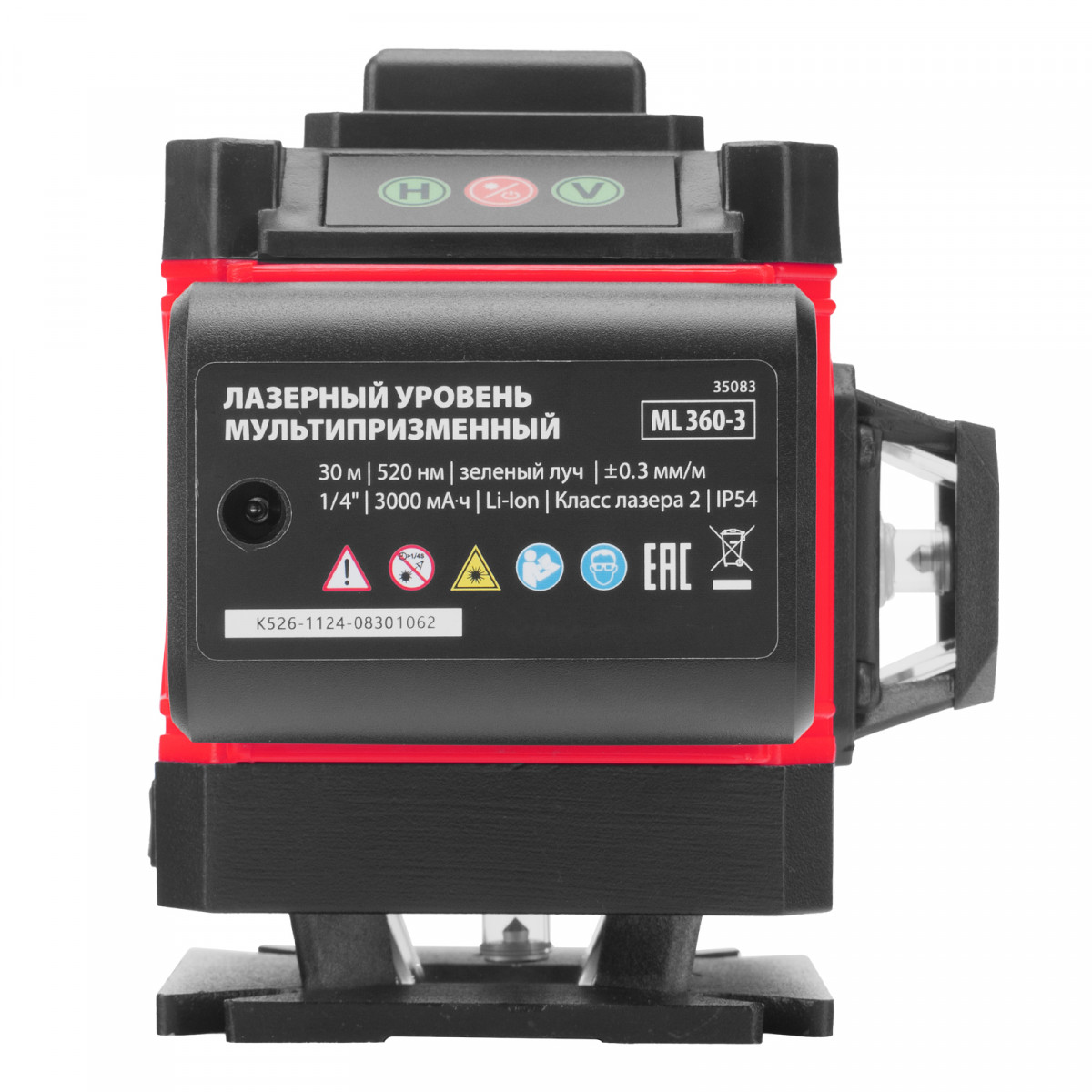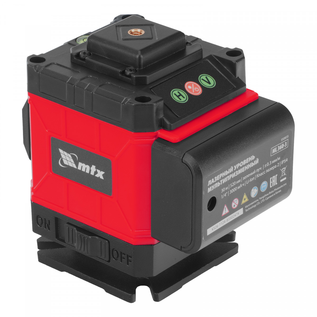 Лазерный уровень м-призм. ML 360-3 Basic SET, 30 м, зеленый луч, акк. Li 3000 мАч, сумка MTX