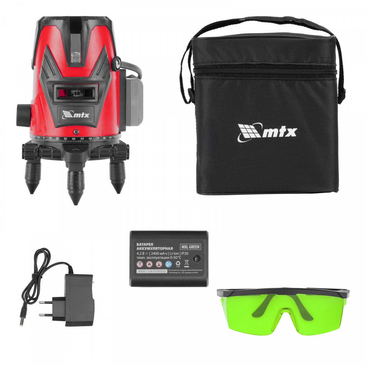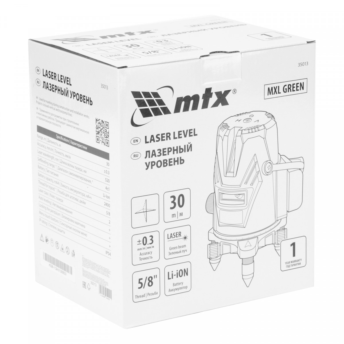 Лазерный уровень MXL GREEN, 30 м, зеленый луч, акк. Li 2400 mAh, сумка, резьба 5/8" MTX