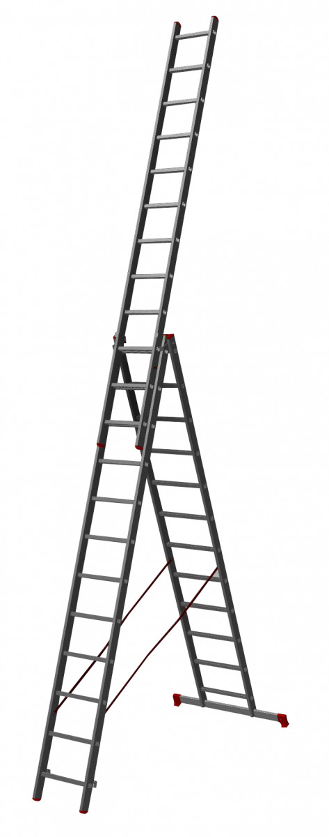 Алюминиевая лестница является функциональным изделием, которое можно применять как обычную стремянку и как приставную лестницу. Верхняя и средняя части оснащены специальным устройством, которое предохраняет лестницу от случайного складывания. Изделие очень прочно и долговечно, так как рама выполнена из качественного материала - профилированного алюминия квадратного сечения, и не поддается воздействию коррозии.