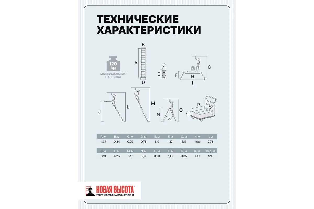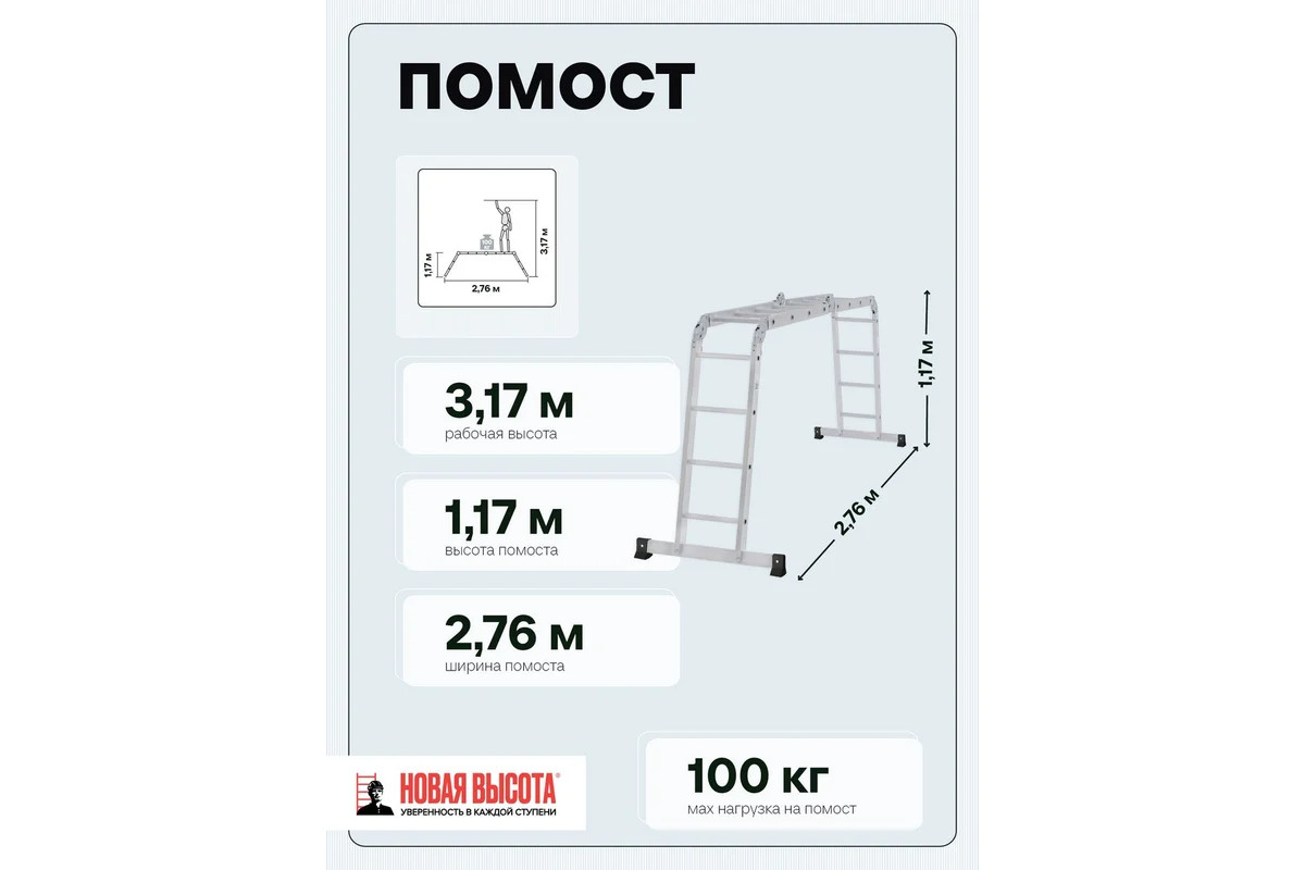 - Максимально допустимая нагрузка в положении помост 100 кг.