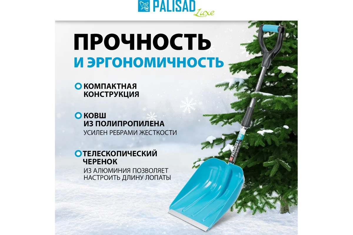 Лопата для уборки снега полипропилен 270х310х760-960 мм телескопический черенок LUXE Palisad