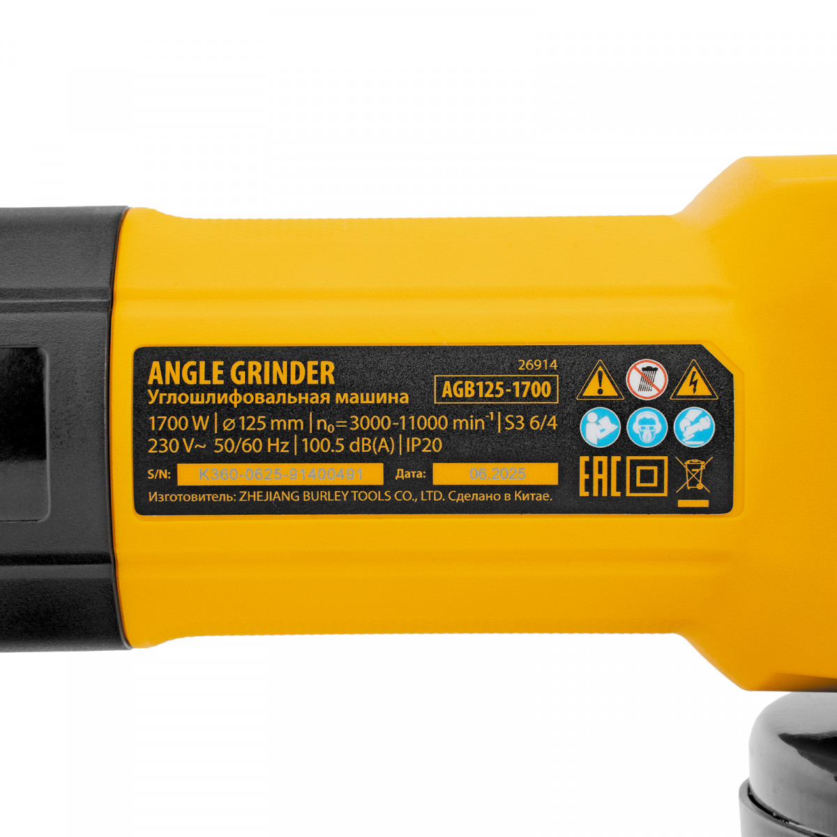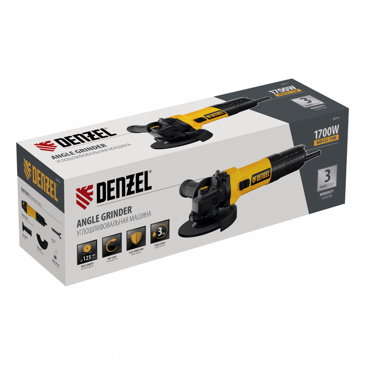 Машина шлифовальная угловая AGB125-1700, 1700 Вт, 125 мм, 3000-11000 об/мин Denzel