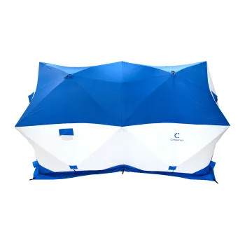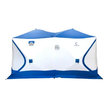 Палатка зимняя куб СЛЕДОПЫТ 3,8х1,9 м 2-х комнатная S по полу 7,2 кв.м 3 слоя цв. синий/белый