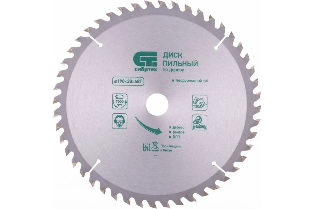 Пильный диск по дереву ф190 х 20 мм, 48 зубьев + кольцо 20/16 Сибртех