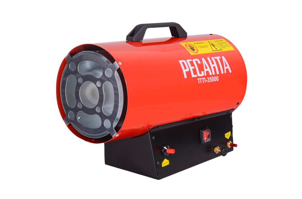 Тепловая пушка Ресанта ТГП-35000 способна быстро и эффективно обогреть нежилое помещение. Чаще всего применяют такие устройства на строительных площадках, в производственных цехах, сельскохозяйственных ангарах. Одно из главных преимуществ теплопушки – простота применения.Отличительные особенности модели Ресанта ТГП-35000: - В качестве топлива в устройстве применяется сжиженный газ. Это может быть пропан, бутан или пропан-бутан. Для подключения баллона есть редуктор и шланг длиной 1,5м.