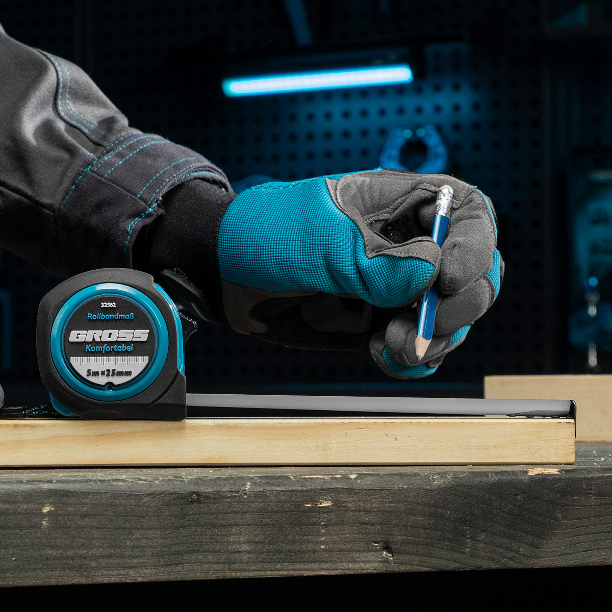 Рулетка Gross «Komfortabel» 32562 в обрезиненном корпусе с лентой длиной 5 м и шириной 25 мм — карманный инструмент для проведения измерительных работ. Позволяет выполнить линейные измерения ровных поверхностей, различных заготовок, материалов, конструкций и т.д.