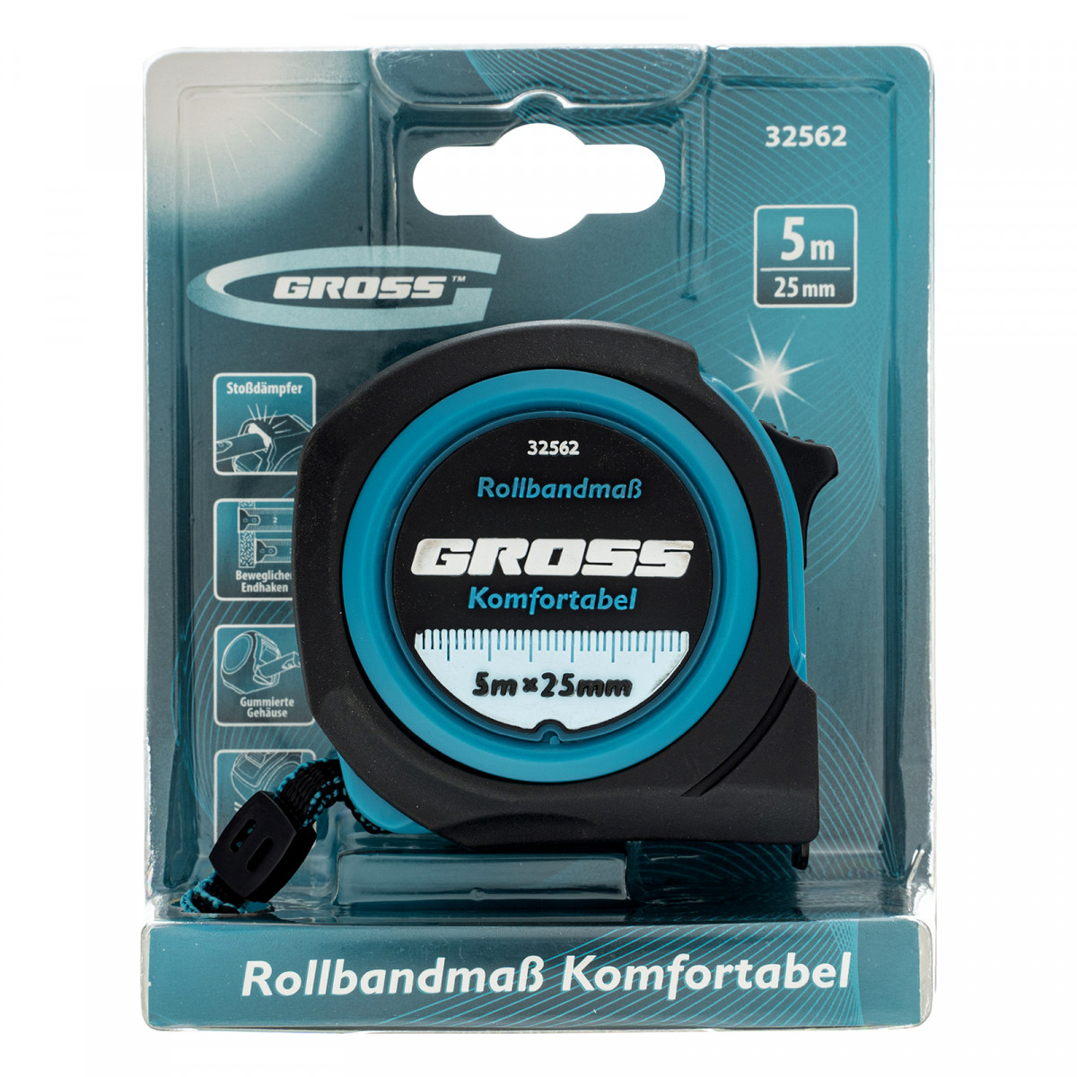 Рулетка Komfortabel 5 м х 25 мм,обрезиненный корпус Gross