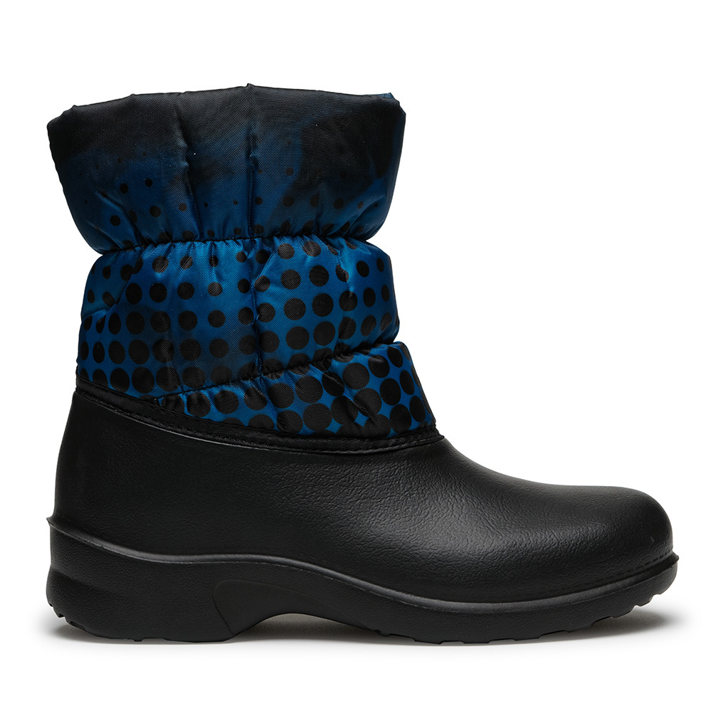 Сапоги зимние женские 327, горошки на бирюзовом, черный Дюна-Аст
