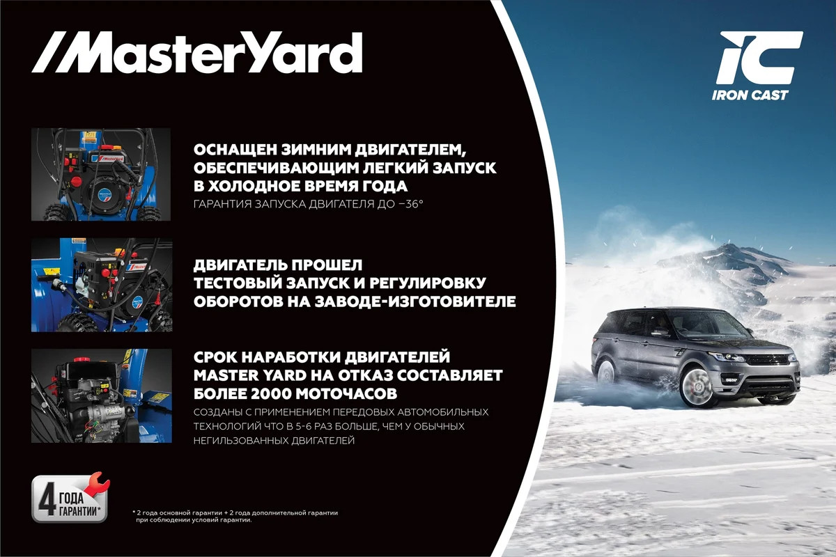 Высокое качество и доступные цены делают популярной на российском рынке технику под торговой маркой MASTER YARD, производство которой осуществляется на самом современном оборудовании, с использованием высоких технологий, с постоянным совершенствованием модельного ряда. Продукция сертифицирована в соответствии со строгими стандартами GS, EPA и UL по качеству, безопасности и экологичности.