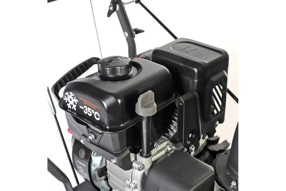 Данная модель используется со снегоотбрасывателем либо с щеткой. Специальная сцепка позволяет быстро менять рабочее оборудование.