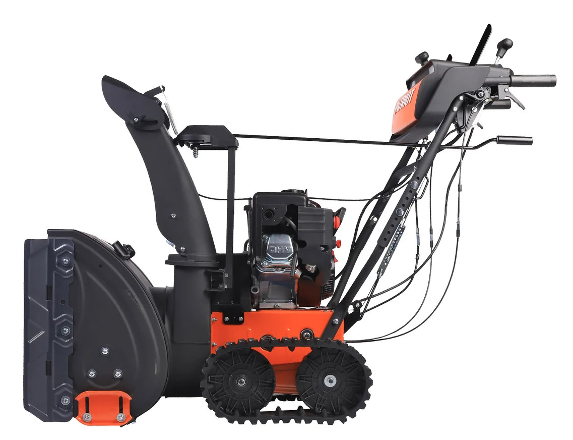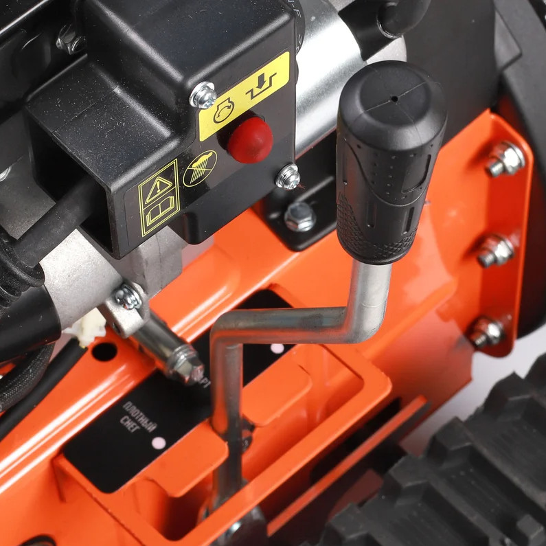 - Регулировка направления выброса снега осуществляется с помощью ручки на панели оператора - угол/направление выброса составляет 190/70 градусов.