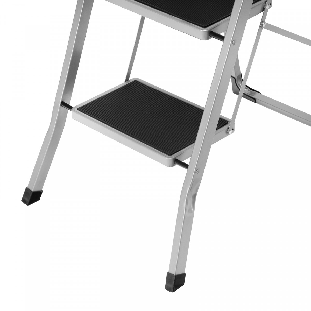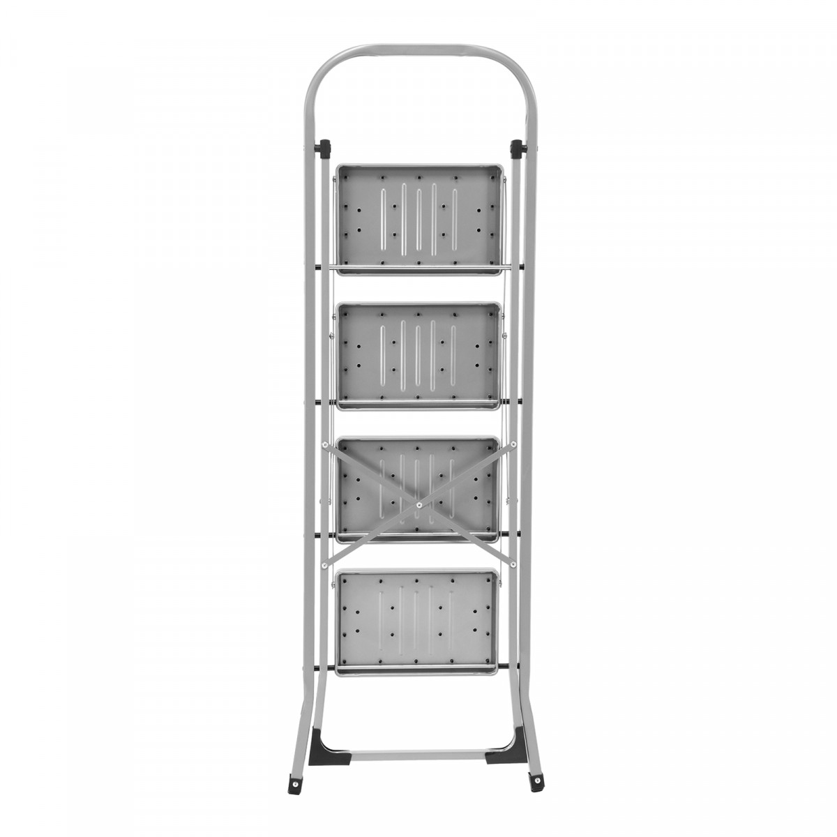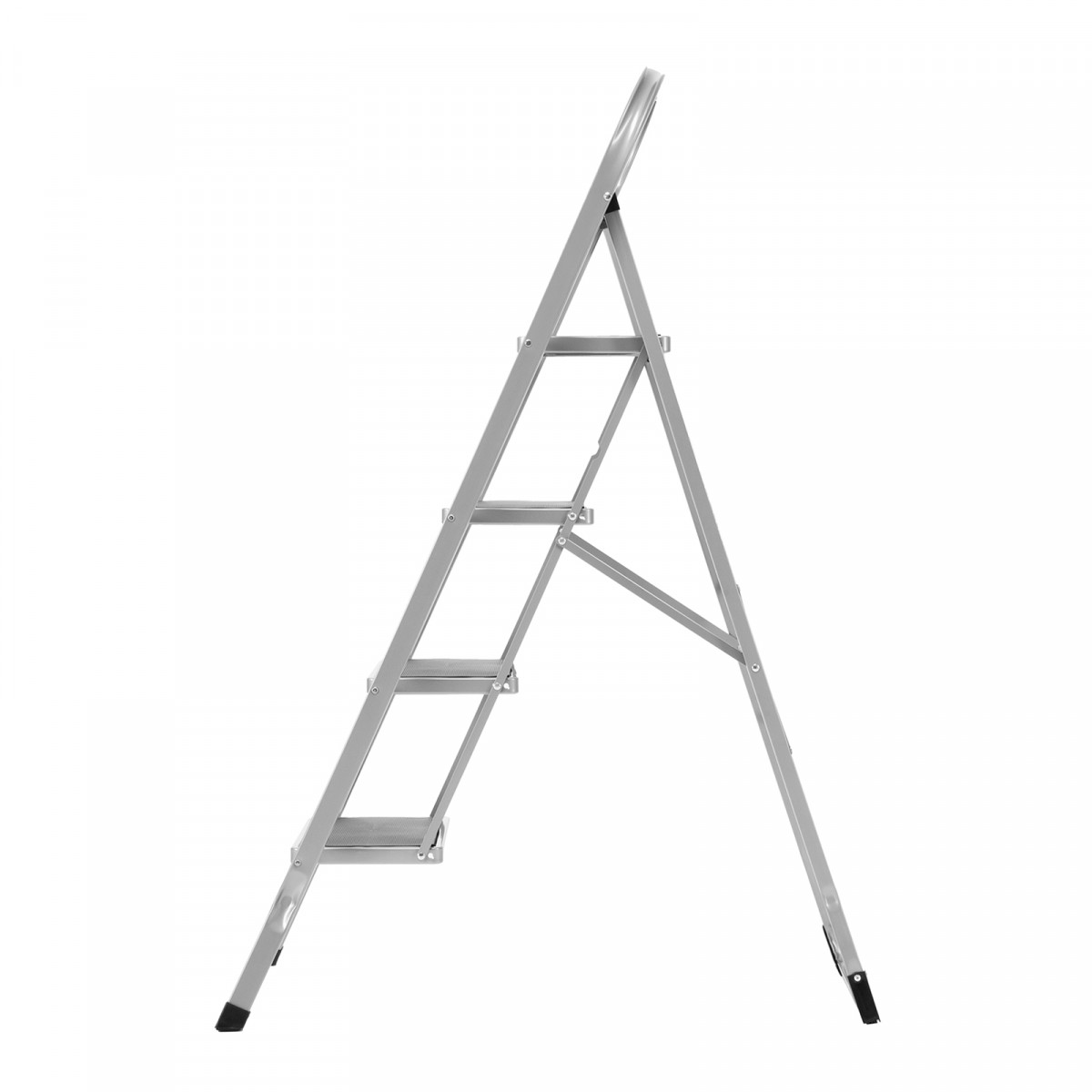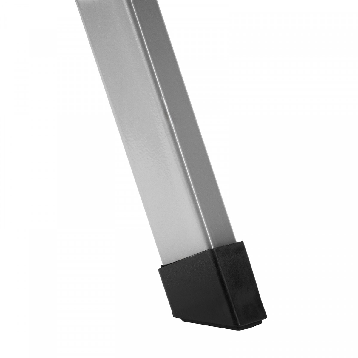 - Прочная конструкция — стремянка изготовлена из стального профиля и снабжена надежным механизмом раскладывания, поэтому выдерживает нагрузку до 150 кг.