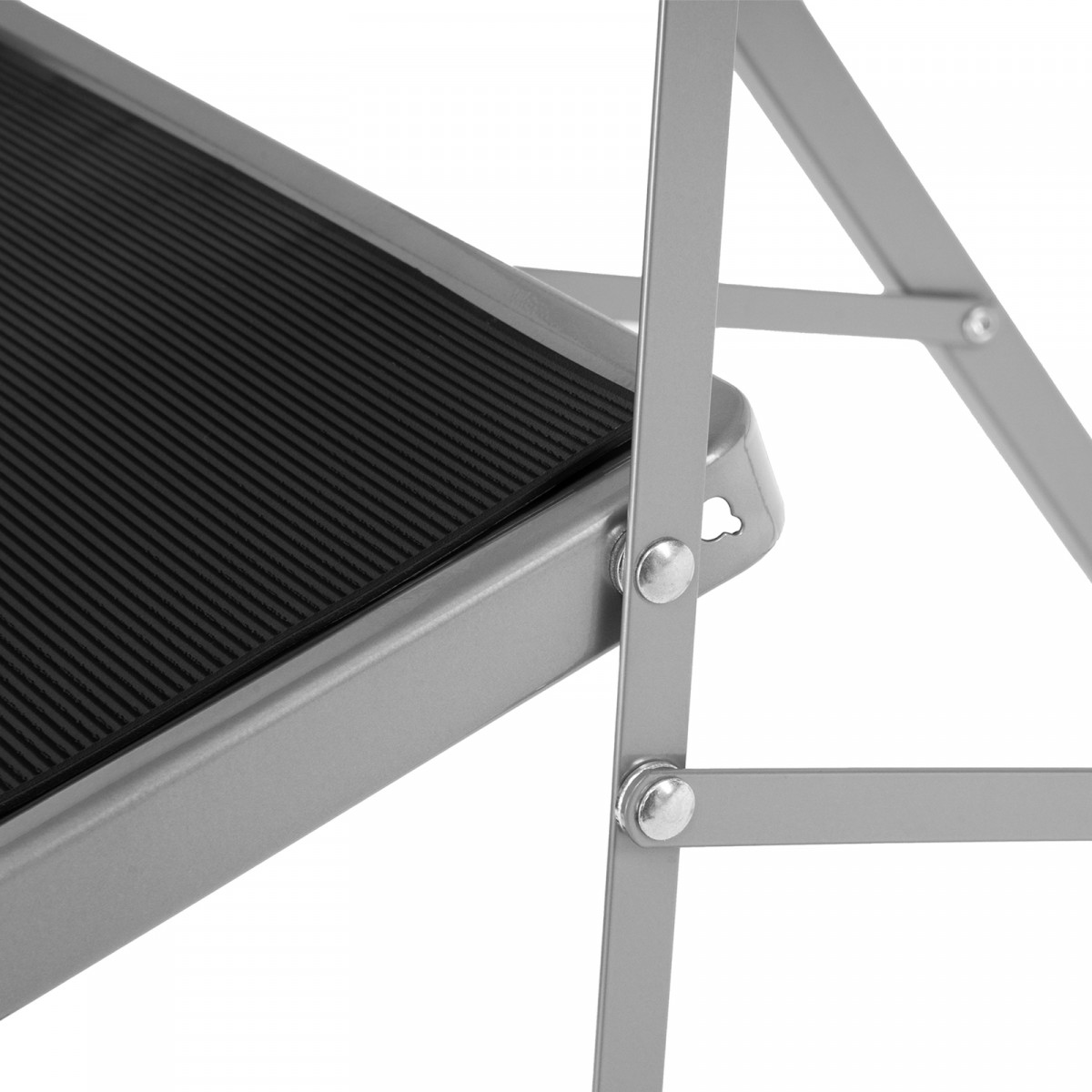 - Удобное хранение — за счет толщины в сложенном виде 4,5 см стремянка не занимает много места.