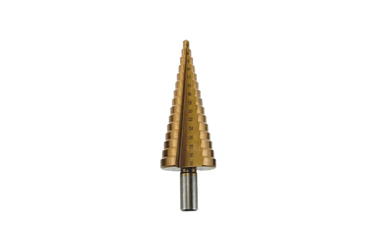 Сверло ступенчатое по металлу применяется для сверления отверстий различного диаметра в тонком листовом материале. Подходит для любой листовой стали толщиной до 6 мм, цветных металлов, пластиковых материалов и т.д.