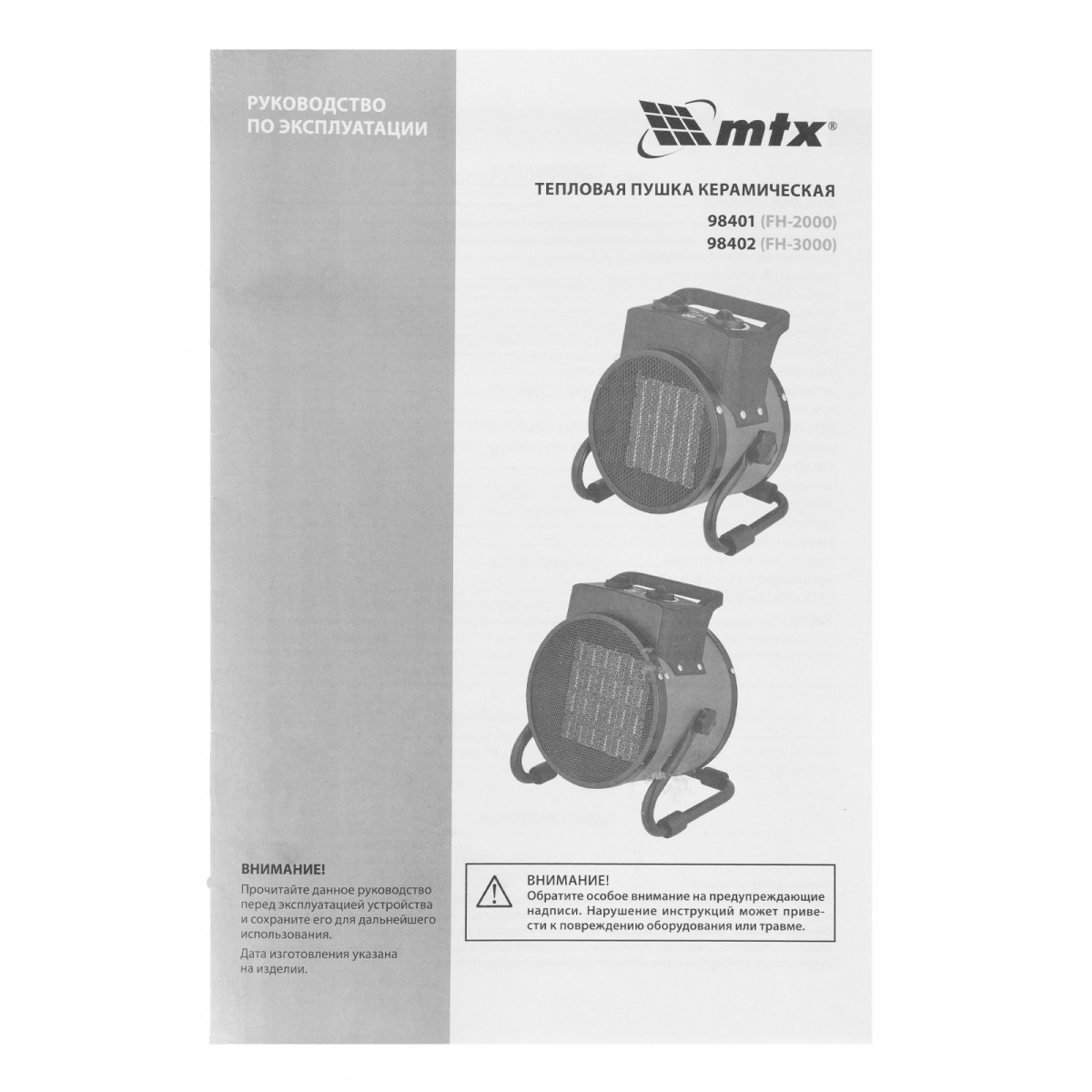 Керамическая тепловая пушка MTX FH-3000 98402 с термостатом, максимальной мощностью 3 кВт, работает в 3 режимах и предназначена для обогрева складов, мастерских и других нежилых помещений площадью до 30 м2. Также может использоваться для быстрой просушки различных поверхностей, например, стяжек пола, оштукатуренных и окрашенных стен.
