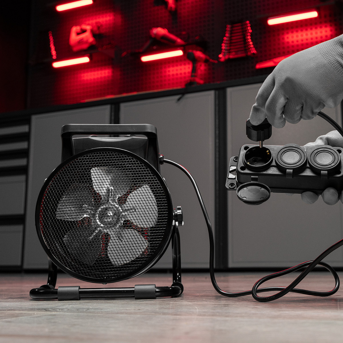 - 3 режима работы — вентиляция (без нагрева), обогрев на частичной или полной мощности.