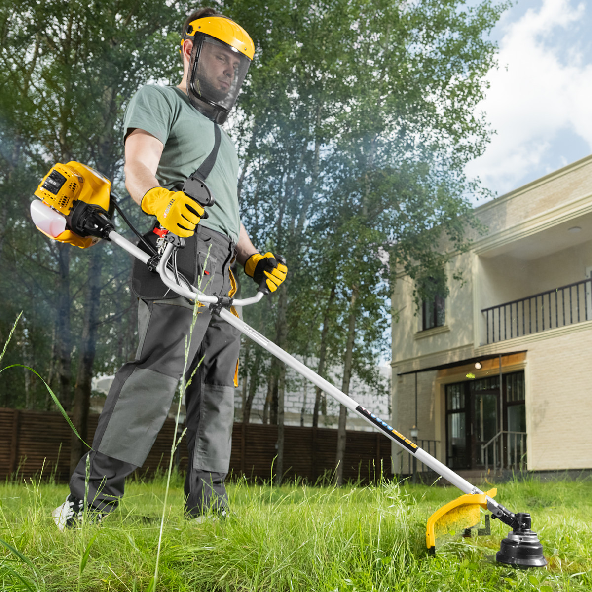 - Мобильность — вес триммера составляет всего 7 кг, поэтому его легко перемещать.
