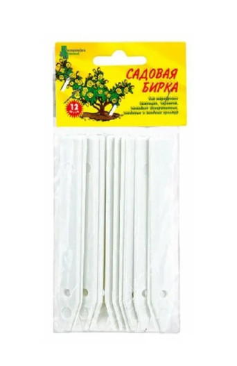 102х13мм, длина колышка = 100ммКоличество бирок в наборе – 12 шт. Цвет белый.Предназначена для маркировки саженцев, черенков, отводок декоративных, плодовых и ягодных культур.
